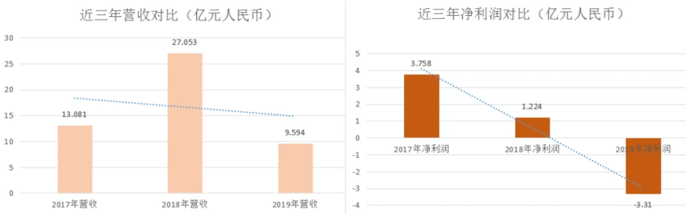 根据招股书显示,2019年前三季度总收入仅为9.6亿元,较2018年同期下降60.5%,净利润更是亏损2.4亿元。